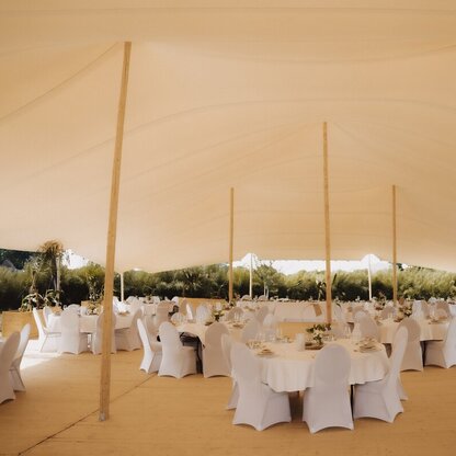 Das besondere Material schützt zuverlässig vor Sonne und Regen und verleiht Ihrem Event gleichzeitig ein offenes, elegantes Ambiente.